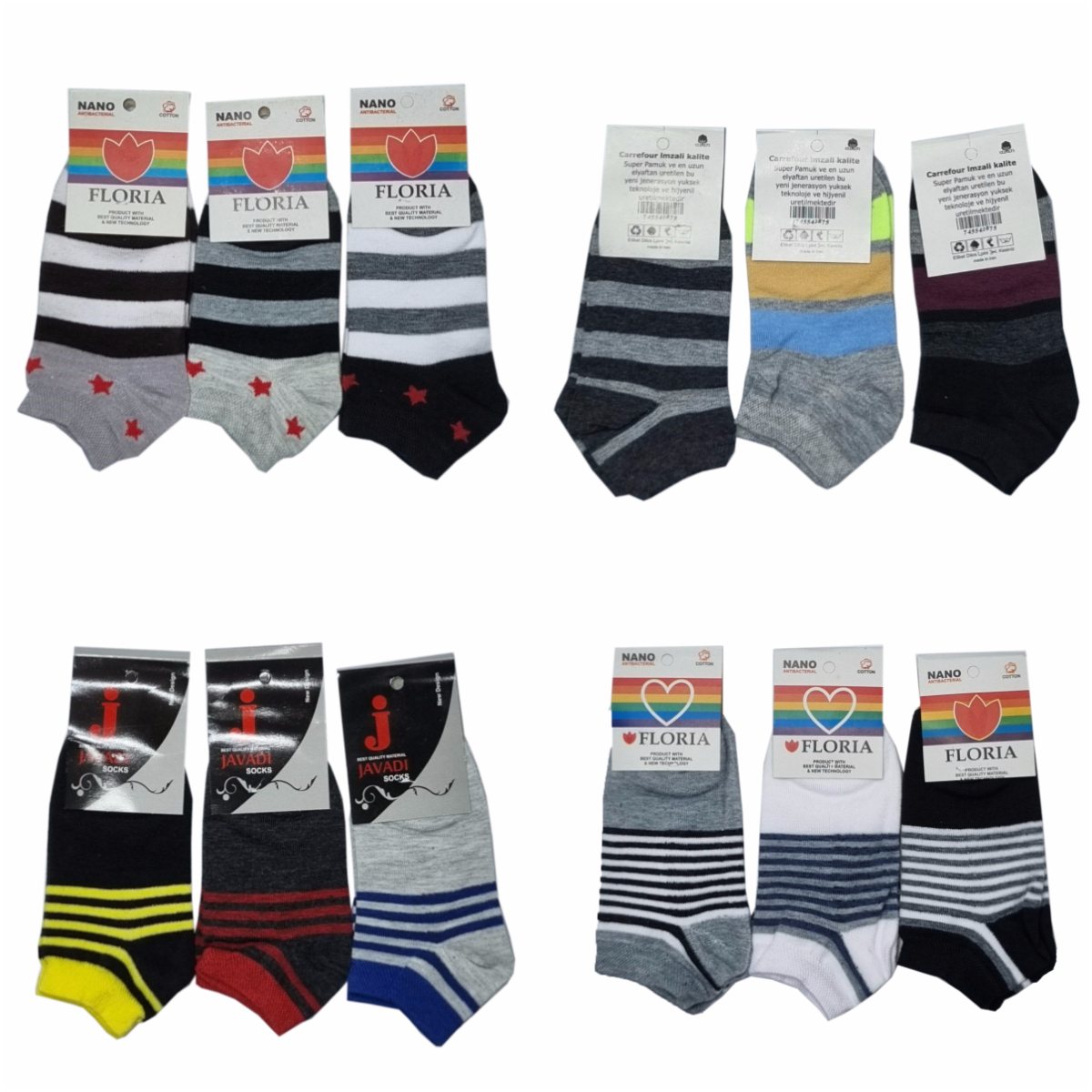 جوراب مچی اسپرت راه راه خط ریز بسته 3 جفتی کد 2228