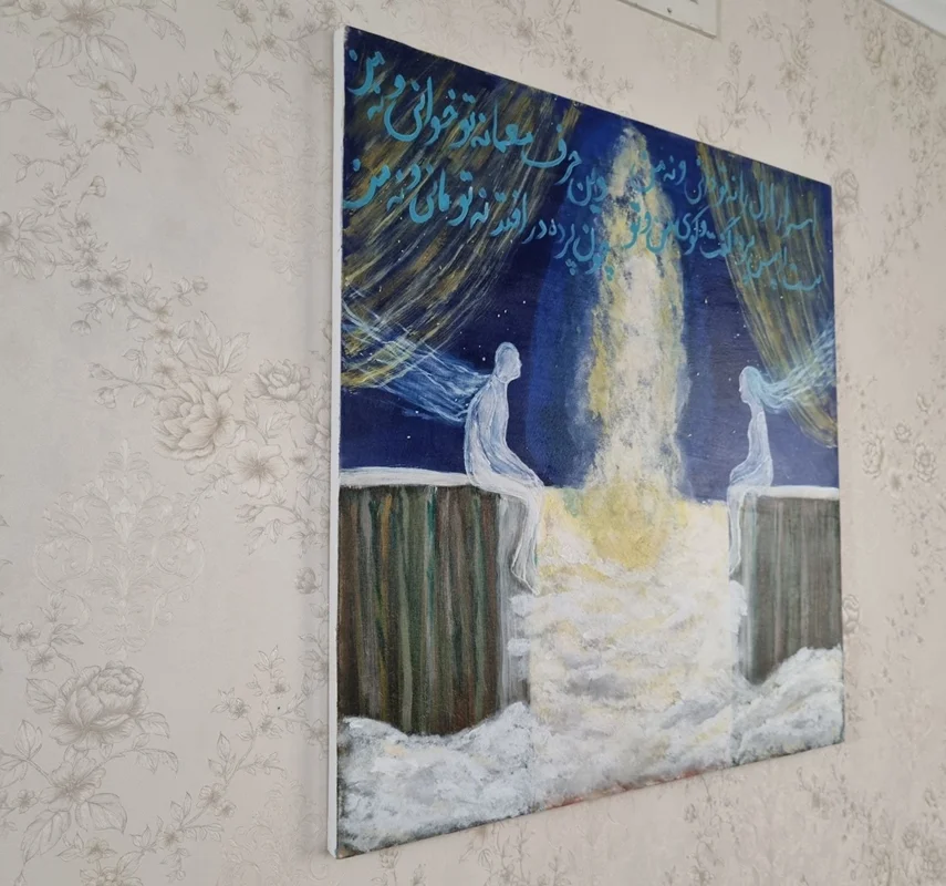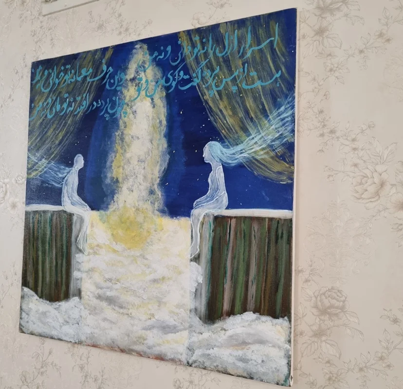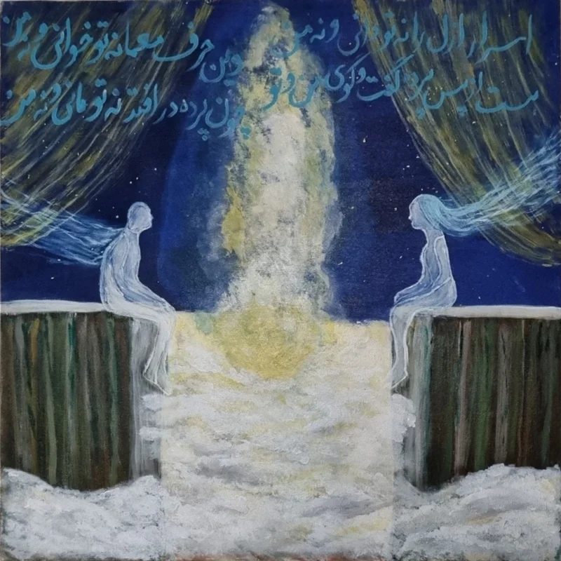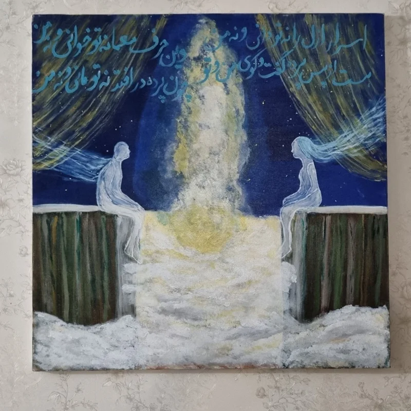 این تابلو نقاشی اکریلیک به نام گفتگو به سبک آبستره کشیده شده .در بالای تابلو شعری از خیام آمده .این تابلو در ابعاد 80 در 80 سانتیمتر و عمق معمولی موجود است و همچنین تک نسخه ای است .بوم این تابلو و مواد به کار رفته با کیفیت است و با بسته بندی مناسبی ارسال می گردد .خالق این اثر هنرمند علیرضا سالمیان است.در پایان کار برای جلوه بیشتر و دوام تابلو و قابلیت تمیز کردن از وارنیش براق استفاده شده/ اسرار ازل را نه تو دانی و نه من /وین حرف معما، نه تو خوانی و نه من/هست از پس پرده گفتگوی من و تو/چون پرده در افتد، نه تو مانی و نه من// خیام