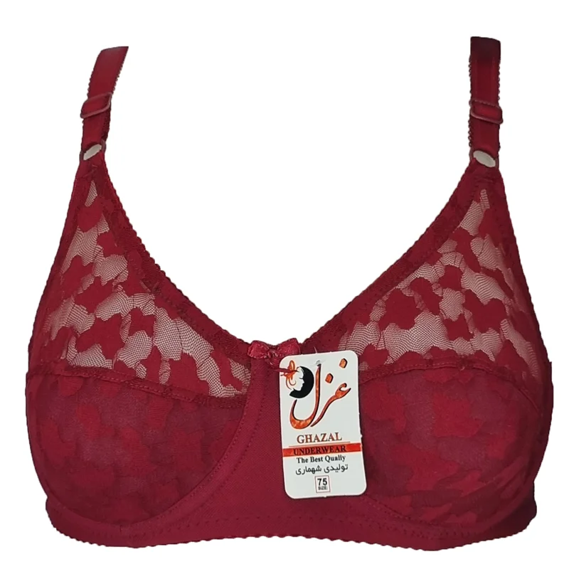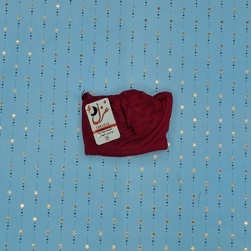 این سوتین مدل دانتل زیر نخ فانتزی از برند غزل است. بالای دانتل کاپ بدون آستر است و از بهترین و با کیفیت ترین مواد در آن به کار رفته و تن خوری زیبا و عالی دارد. بالای و دور کاپ سوتین به جهت زیبایی و دوام بیشتر دوخت شده است.این محصول رنگ قرمز سیر است و در سایزهای 75.80.85.90 بسته بندی شده است.