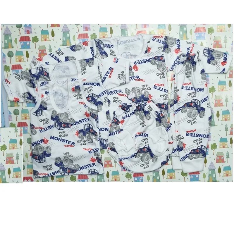 این محصول ست 5 تکه برند مهرسام شامل بلوز آستین بلند و کوتاه و رکابی و شلوار و شورت عینکی است. این ست از جنس نخی می باشد که مانع تعریق و حساسیت می گردد. کالا طرح ماشین و در 3 سایز : 1 مناسب 0 تا 3 ماهگی/ 2 مناسب 3 تا 5 ماهگی / 3 مناسب 5 تا 10 ماهگی موجود است. جدول سایزبندی به خرید شما کمک می کند.شما می توانید با کلیک بر روی لینک (( ست لباس نوزاد )) مدلهای دیگر و لینک (( ست پنج تکه نوزادی )) رنگهای دیگر و تنوع های مختلف این محصول را مشاهده کنید.