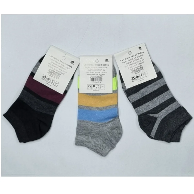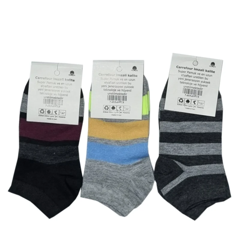 این محصول جوراب مچی طرح راه راه است.نخ به کار رفته از تعریق و بوی بد جلوگیری میکن و برای سایز پا تا شماره 40 مناسب است . این محصول در بسته 3 جفتی بسته بندی شدهشما می توانید با کلیک بر روی لینک (( جوراب مردانه )) مدلهای دیگر و لینک (( جوراب اسپرت مردانه )) رنگهای دیگر و تنوع های مختلف این محصول را مشاهده کنید.