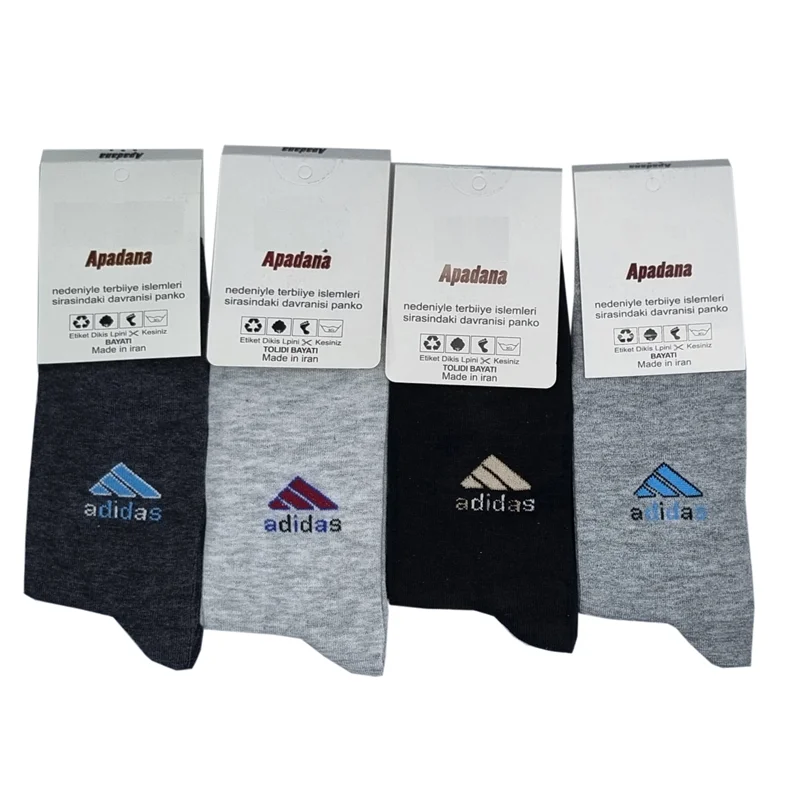این محصول جوراب مردانه تولیدی آپادانا طرح آدیداس است و از جنس نخ تهیه شده و دارای کشسانی و ضخامت خوبی است .این محصول در بسته چهار جفتی در رنگهای مشکی، دودی، طوسی روشن و طوسی سیر بسته بندی شده و فری سایز است.شما می توانید با کلیک بر روی لینک (( جوراب مردانه )) مدلهای دیگر و لینک (( جوراب مجموعه پاسارگاد )) رنگهای دیگر و تنوع های مختلف این محصول را مشاهده کنید.